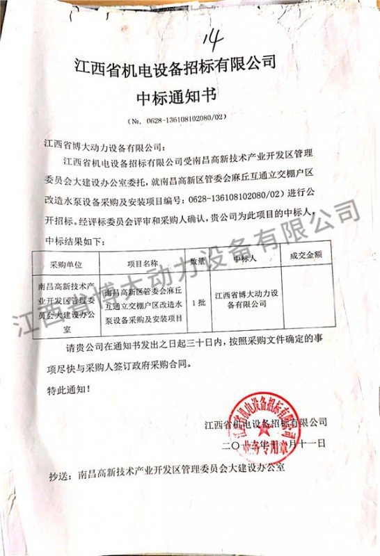 南昌高新技術產業開發區管理委員會項目中標