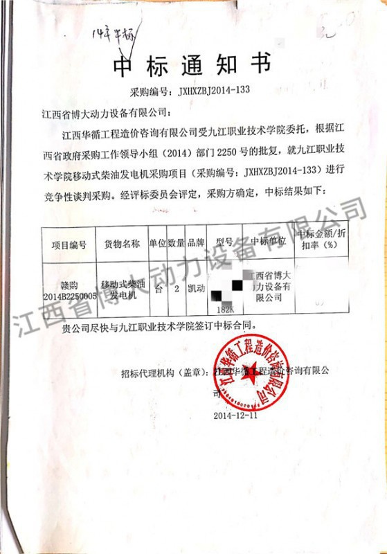 九江職業技術學院項目中標