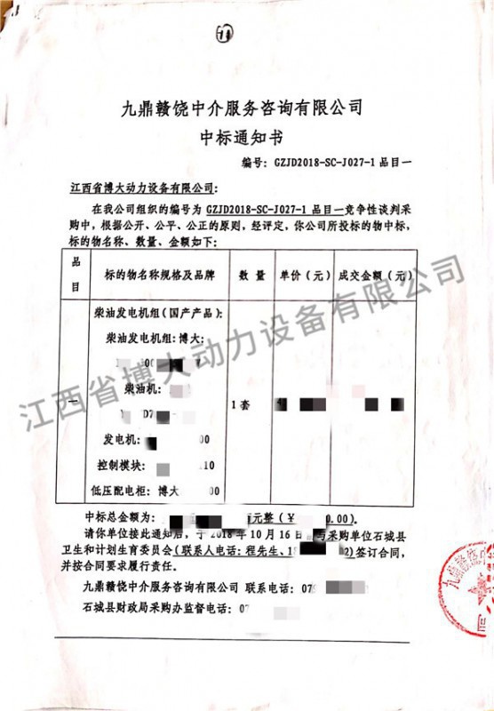 石城縣衛生和計劃生育委員會項目中標